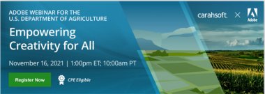 If you are looking to keep up with the latest creative trends and techniques, optimize your workflow, or enhance your current creative project best practices, this session is for you! Join our complimentary webinar to uncover the Adobe MAX announcements most relevant and beneficial to the U.S. Department of Agriculture (USDA) and take a deep dive into some of the new features in several CC applications.