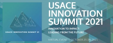 Join us October 25-29 for the USACE Innovation Summit 2021, Innovation to Impact: Leading from the Future, to showcase U.S. Army Corps of Engineers innovations from both R&D and applied practices as well as innovations in Human Capital and business processes. With this Summit, we want to shift a culture that tends to be risk averse to one that will take a chance with innovative ideas.