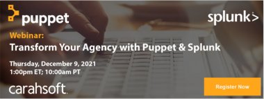 Join Puppet, Splunk, and Carahsoft on December 9th for a chance to connect with subject-matter experts on Puppet and Splunk's industry-changing integration. With Puppet and Splunk, agencies get real-time visibility, reporting, and automation to ensure all IT operations run smoothly.
