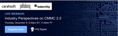 Join this webinar to hear from experts at Carahsoft, Baker Tilly, and Pillsbury on the evolving CMMC program and what this means for the Defense Industrial Base. Topics include: