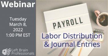 Labor distribution converts hours into dollars and distributes those dollars throughout the GL and across jobs. Payroll journal entries record the employer's portion of employment taxes and offset salaries payable created by the labor distribution process. Both are necessary for the accurate calculation of indirect rates for government contracts. Errors often include failure to segregate labor accounts and properly account for employee deductions. Reimbursement of employee expenses through payroll adds another layer of complexity to the process as expenses often get erroneously recorded as labor. In this webinar we'll show you how to perform labor distribution using QuickBooks Desktop Manual Payroll, how to identify common errors, and we'll share our free payroll journal entry template.