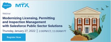 On January 27, join Salesforce, MTX, and Carahsoft on our virtual event to hear best practices on customer use cases and learn how our solutions give field inspectors mobile inspection capability, and service agents productivity gains that can generate cost-savings.