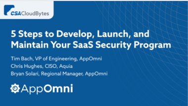 As the use of SaaS applications grows within organizations of all sizes, so does the need to implement strong SaaS security. There are some simple first steps to determine if your organization has the proper SaaS security program in place - and best practices to ensure your apps stay protected. Join Tim Bach, Vice President of Engineering at AppOmni; Chris Hughes, CISO at Aquia; and Bryan Solari of AppOmni as they discuss SaaS security, how to get started, and best practices to achieve success. They’ll also offer a sneak peek into the upcoming “SaaS Governance Best Practices for Cloud Customers” report from CSA.