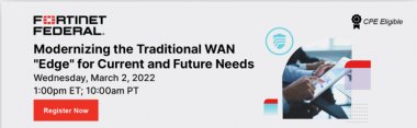 Join Fortinet and Carahsoft for a series of "Modernization" webinars that will focus on the components of Federal IT Modernization. Leveraging the security-driven networking approach, converging networking and security with a single operating system, Fortinet solutions allow enterprises to modernization and simplify their WAN edge, enhance their security posture, improve user experience, and reduce cost.