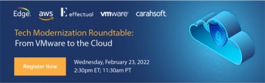 Edge is hosting a Tech Modernization Roundtable to discuss transitioning VMware-based solutions to the cloud, with options including VMware Cloud (VMC) on Amazon Web Services (AWS) and a brand new multi-tenant offering to make the solution more affordable.