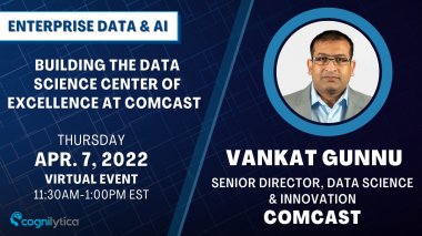 The April 2022 Enterprise Data & AI featured guest speaker is Venkat Gunnu, Senior Director, Data Science & Innovation at Comcast and his presentation ‘Building the Data Science Center of Excellence at Comcast’ Thursday, April 7, 2022 from 11:30 AM - 1 PM ET!