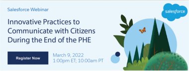 Register now for this upcoming webinar to hear from a public sector agency on how they have approached these new challenges, and their efforts to improve citizen engagement. Then how our Salesforce solution can help your agency handle the changes ahead through a live demo.