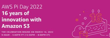 Attend the 2nd annual AWS Pi Day virtual event on March 14, 2022 hosted on the AWS channel on Twitch as we celebrate 16 years of innovation with Amazon S3. During this educational event, we'll dive into how you can leverage S3 to keep your data protected, put your data to work to gain insights, and optimize your storage costs.