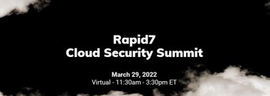 Join Rapid7’s third-annual Cloud Security Summit to gain unique insights into the emerging best practices for securing cloud-native environments and applications. During this one-day virtual event you’ll hear from leading security professionals and industry experts at organizations including Amazon Web Services and Snyk, get visibility into never-before-published research by Rapid7’s award-winning security research team and discover new strategies that will help you drive cloud security forward within your organization.