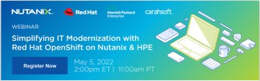 Please join us on May 5th to learn how Red Hat OpenShift on Nutanix and HPE simplifies application modernization efforts. This certified solution of Red Hat Openshift is the industry-leading enterprise Kubernetes platform built for hybrid cloud, powered by the Nutanix Cloud Platform- the market-leading hyperconverged infrastructure provider - and HPE.