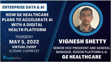 The May 2022 Enterprise Data & AI featured guest speaker is Vignesh Shetty, SVP & GM, Edison Platform & Artificial Intelligence at GE Healthcare and his presentation ‘How GE Healthcare Plans to Accelerate AI with a Digital Health Platform’ on Thursday, May 5, 2022 from 11:30 AM - 1 PM ET!