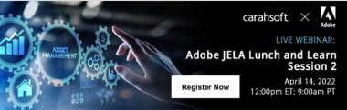 Adobe, Carahsoft, and Emergent are excited to invite current Adobe Joint Enterprise License Agreement (JELA) enrollees to the second session of our Adobe JELA Lunch and Learn series.