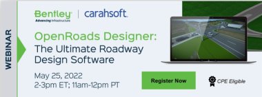 Join our complimentary webinar to learn about and watch a live demonstration of OpenRoads Designer - the "Ultimate Roadway Design Software."