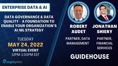 Enterprise Data & AI is hosting guest speakers Robert Audet, Partner, Data Management and Jonathan Shiery, Partner, Financial Services at Guidehouse and their presentation "Data Governance & Data Quality – A foundation to enable your organization’s AI/ML strategy" on Tuesday, May 24, 2022 from 12 PM - 1 PM ET!