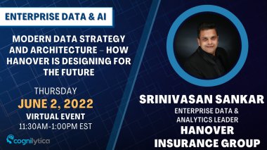 The June 2022 Enterprise Data & AI event is hosting featured guest speaker Srinivasan Sankar, Enterprise Data & Analytics Leader at the Hanover Insurance Group and his presentation ‘Modern Data Strategy and Architecture – How Hanover is Designing for the future’ on Thursday, June 2, 2022 from 11:30 AM - 1 PM ET!