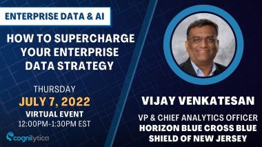 Join this presentation where Vijay Venkatesan, VP & Chief Analytics Officer at Horizon Blue Cross Blue Shield of New Jersey will discuss: why your enterprise data strategy needs to focus on data assets, the scope and role of data governance, the importance of identifying use cases, embedding AI capabilities as well as showcasing value to your stakeholders. Be sure to stick around for Q&A with Vijay! Register and attend for free on the Cognilytica event website