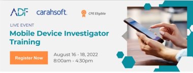 ADF Solutions is excited to offer a complimentary, hands-on, instructor-led training for Mobile Device Investigator® (MDI), and a free 6-month license and MDI User Certificate to all attendees upon completion of the training! Attendees will learn how to configure MDI, operate the mobile phone forensic software and interpret results.