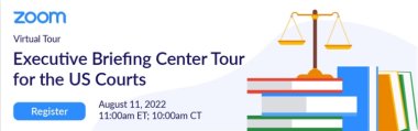 Join us on August 11 for an exclusive virtual tour, as the Zoom for Government showcases the power of the Zoom platform incorporating Zoom Rooms and our hardware partners to deliver the most seamless hybrid court experience available for in-person and remote court participants.