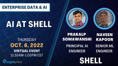 Enterprise Data & AI is excited to announce the October 2022 featured presentation ‘AI at Shell’ by featured guest speakers Prakalp Somawanshi, Principal AI Engineer and Naveen Kapoor, Senior Machine Learning Engineer at Shell on Thursday, October 6, 2022 from 11:30 AM - 1 PM ET!