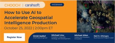 Join us for this live webinar where the Chooch Public Sector team will show you how to use AI in novel ways to rapidly screen large amounts of images to accelerate geospatial intelligence production.