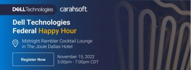 Dell Technologies & Carahsoft would like to invite you to our happy hour reception for the Super Computing 2022 Conference. Please join us on Tuesday, November 15 at 5:00 pm for cocktails, appetizers, and networking opportunities.