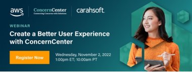 Join AWS and ConcernCenter for a webinar on Wednesday, November 2nd, at 1:00pm ET to learn about optimizing user experiences through ConcernCenter. ConcernCenter is a customizable resource hub that provides immediate tools for users in need, reframing the way customer support is provided. By increasing accessibility, ConcernCenter makes customer support efficient and simplifies the search process.