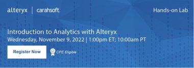 Join Alteryx to go hands-on and learn how to apply these techniques for yourself. You will learn how to bring in and merge different sources of data, ensure data quality by conducting exploratory analysis, and enhance your decision making by performing basic analysis. Whether you're new to working with data or experienced data guru, you'll walk away with skills and ideas that are applicable to your challenges.
