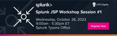 | 1:00pm - 4:30pm | Investigating with Splunk: In this workshop, Splunk experts will show you how to investigate different types of activity - including login, endpoint, and network events - so you can quickly identify root cause and make informed decisions on how to remediate the threat. During this workshop, you'll learn how to: