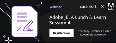 Adobe, Carahsoft, and Emergent are excited to invite current Adobe Joint Enterprise License Agreement (JELA) enrollees to the fourth session of our Adobe JELA Lunch and Learn series.