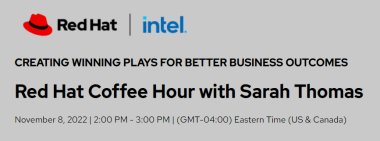 See it, believe it, do it. Join us for the next Red Hat® Coffee Hour to learn how you can apply Sarah’s lessons learned to create winning plays for transforming your people, processes, and technologies to achieve better business outcomes.