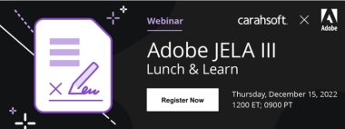 Adobe, Carahsoft, and Emergent are excited to invite current Adobe Joint Enterprise License Agreement (JELA) enrollees to the next session of our Adobe JELA Lunch and Learn series.