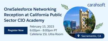 Continue your first-day experience of California Public Sector CIO Academy 2023 at a complimentary networking reception with OneSalesforce!