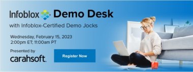 Join our Infoblox-Certified Demo Jock for a 30-minute demo to learn how Infoblox can provide a smarter and more efficient way to manage and protect your network. Our presenter will discuss: