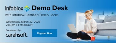 Join our Infoblox-Certified Demo Jock for a 30-minute demo to learn how Infoblox can provide a smarter and more efficient way to manage and protect your network. Our presenter will discuss: