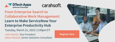 Join us on Tuesday, March 21st to learn how your organization can make ServiceNow an enterprise-wide productivity hub for search and collaborative work management.