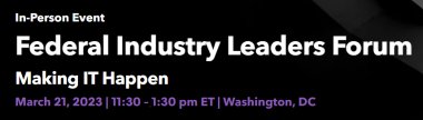 On March 21 Bloomberg Government will host its ‘Making IT Happen’ lunch event, as part of the ongoing Federal Industry Leaders Forum series discussing the latest happenings and trends within the federal government.