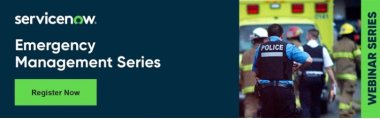 This webinar series will present front line use cases of the ServiceNow platform as well as demonstrations of platform capabilities for a variety of emergency management challenges.