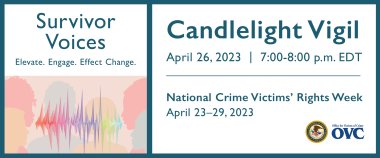 The National Crime Victims' Rights Week Candlelight Vigil is hosted by the Office for Victims of Crime (OVC), Office of Justice Programs, U.S. Department of Justice. This special event pays tribute to victims of crime and the many dedicated professionals and volunteers who advocate on their behalf.