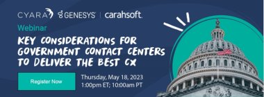 Join us on May 18th for our online event, Key Considerations for Government Contact Centers to Deliver the Best CX, where attendees have to opportunity to hear from industry experts about the present state of CX and how to guarantee your customers receive excellent service with Genesys and Cyara.