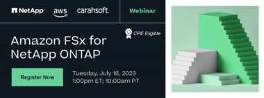 You're invited to join NetApp, AWS, and Carahsoft for a webinar exploring how your agency can implement a broader and modernized cloud portfolio. Amazon FSx for NetApp ONTAP is a native AWS-managed service, delivering block and file storage integrated with NetApp's portfolio of enterprise-grade data services.