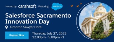 Carahsoft is excited to host Salesforce Sacramento Innovation Day on Thursday, July 27th and would like to invite you to attend!