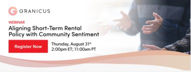 Join Granicus for a complimentary webinar to learn how can leaders engage with their community, collect feedback from a diverse range of viewpoints, and ensure their short-term rental program reflects the goals of your community?