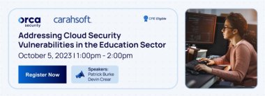 Please join Orca Security and Carahsoft for an informative session on cloud security vulnerabilities in the education sector hosted by Devin Crear, Sr. Cloud Security Representative, Orca Security, and Patrick Burke, Sales Engineer, Orca Security.