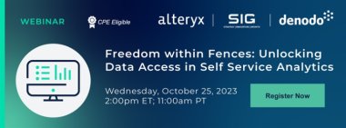 Join us for the upcoming webinar to learn how Strategic Innovation Group (SIG) can help government agencies and Higher Education institutions unlock data insights in a secure self service model by leveraging the combined power of Denodo and Alteryx.