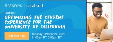 We are thrilled to invite you to a customized webinar exploring new solutions to take student experience to the next level at the University of California. Join us for an enlightening session as we delve into recent advances in personalized engagement, seamless interactions, and empowered customer journeys that cater to the unique needs of a diverse and digital-native (or “demanding”) student body.