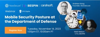 Tune into this webinar to hear subject matter experts, Andrew Hoog, Founder, NowSecure, and Matt Nelson, CTO, BESPIN as they review the core tenets of the NIAP program and discuss: