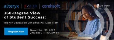 Historically, higher education institutions and state agencies have struggled to capture, understand, and report student data due to siloed disparate systems and the lack of a centralized data platform. This webinar with Alteryx and Avaap taught attendees how a longitudinal, 360-degree data mart is a one-stop-shop for simplified, repeatable, comprehensive, and advanced analysis of students with near real-time data feeds, helping institutions and agencies obtain insights that can improve student performance and the student experience.