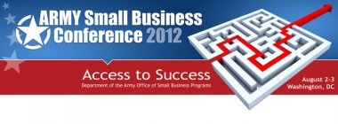 The 2012 Army Small Business Conference is a national conference presented by the U.S. Department of the Army Office of Small Business Programs designed to provide attendees with "Access to Success" through gaining knowledge and building successful business partnerships between federal government, small businesses and prime contractors. This event will help business leaders maximize opportunities in the federal marketplace by engaging directly with buying commands and contracting personnel. Come enjoy networking opportunities, stimulating educational sessions, expert discussion panels, and engaging forums.