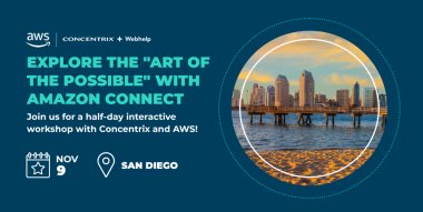 Join the Concentrix and AWS teams for this complimentary workshop (followed by a happy hour!) at the AWS San Diego Office to explore Amazon Connect and GenAI for your contact center: