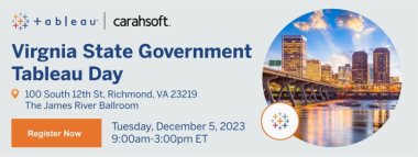 Please join us in person for a free Tableau Day Seminar exclusively for Virginia Government Agencies!
